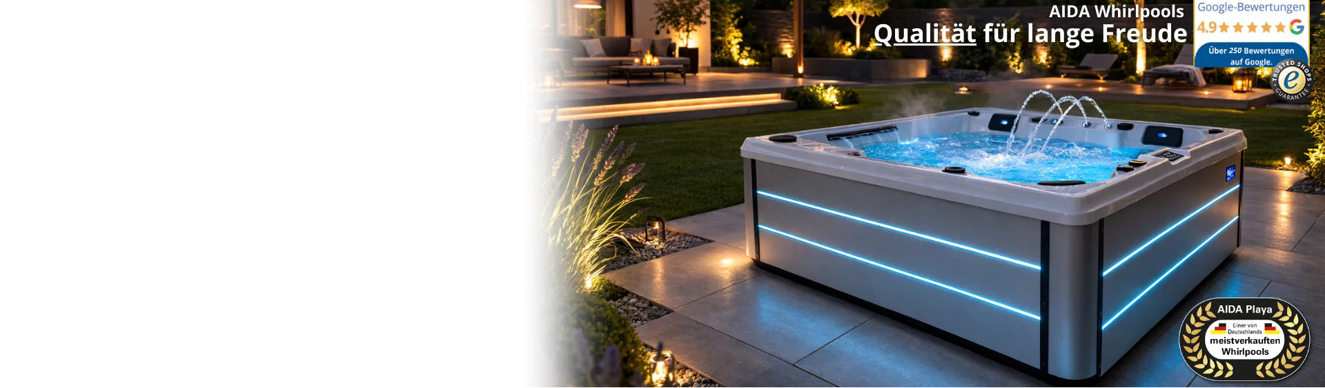 AIDA Whirlpools legt besonderen Wert auf eine hohe Kundenzufriedenheit. Damit Sie AIDA Whirlpools vertrauen können, haben wir uns bereits 2017 nach den Trusted Shops Qualitätskriterien zertifizieren lassen. Seitdem haben wir dadurch mehr als 1700 verifizierte Bewertungen für Bestellungen über unseren Onlineshop erhalten. Der Anteil an 5-Sterne-Bewertungen liegt bei über 90% (Stand Dez. 2024). Siehe Trusted Shops: Gütesiegel für AIDA Whirlpools. Bei den Google-Unternehmensbewertungen liegt AIDA Whirlpools mit über 240 Bewertungen bei 4,9 von 5 Sternen (Stand Dez. 2024).