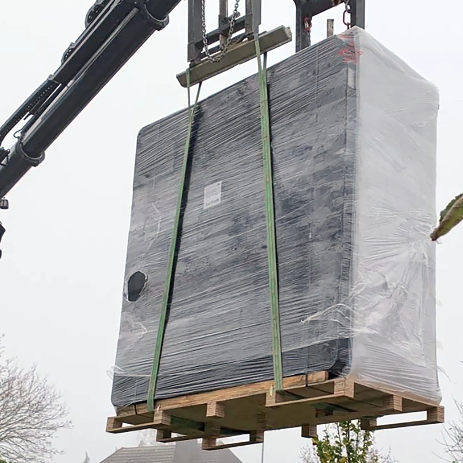 Sollte Ihr Whirlpool auf eine Dachterrasse oder an einem anderen schwer zugänglichen Platz aufgestellt werden, entscheiden Sie sich für die Zuhilfenahme eines Autokrans.