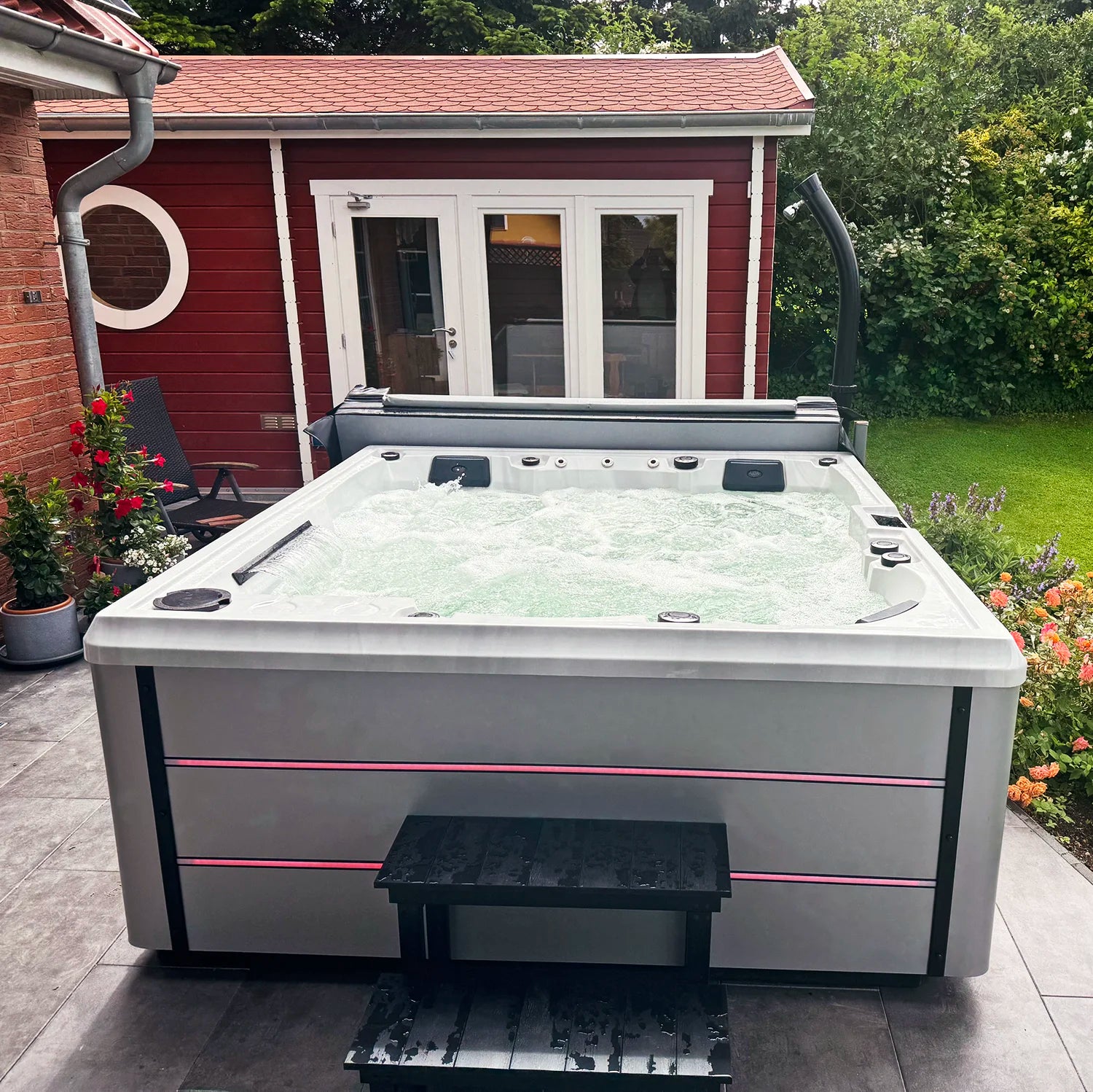 Moderner XXL-Außenwhirlpool für 4 bis 6 Personen in exklusivem Design.
