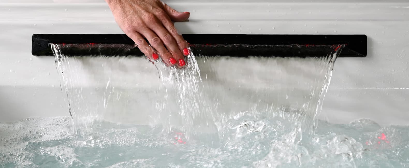 Eine außergewöhnliche Funktion dieses Whirlpools ist es, dass die Zirkulationspumpe über einen extra Button ein- und ausgeschaltet werden kann, unabhängig von den Filterzyklen. Der Wasserfall ist mit der Zirkulationspumpe verbunden. Da die Zirkulationspumpe sehr leise arbeitet, kann der Wasserfall nahezu geräuschlos verwendet werden. Das sanfte Plätschern des Wassers umrahmt Ihren Aufenthalt im Whirlpool oder im Garten.