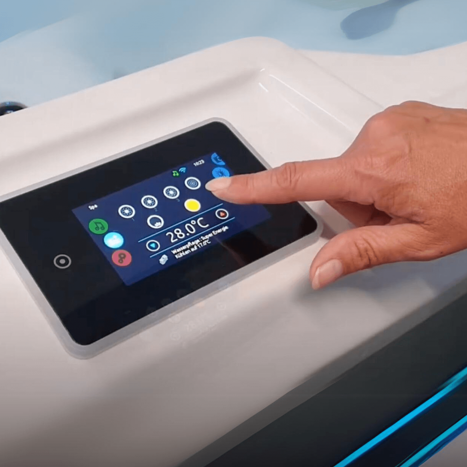 Feel the Beat! Das raffinierte Soundsystem macht diesen Whirlpool zur Konzertarena. Vier "unsichtbare" Körperschalllautsprecher sind von unten am Wannenkörper befestigt und bieten in Kombination mit dem Gecko Audio System (Kanada) ein beeindruckendes Klangerlebnis. Koppeln Sie Ihr Smartphone oder Tablet mit der Soundanlage und steuern Sie alle Funktionen über das große Touch Panel des Whirlpools. Wechseln Sie die Titel Ihrer Playlist, regeln Sie die Lautstärke (und den optionalen Subwoofer) oder verlagern Sie die den Klang innerhalb des Whirlpools.